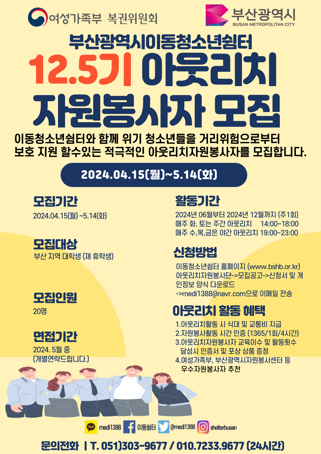 부산광역시이동청소년쉼터에서 12.5기 아웃리치자원봉사단을 모집합니다.